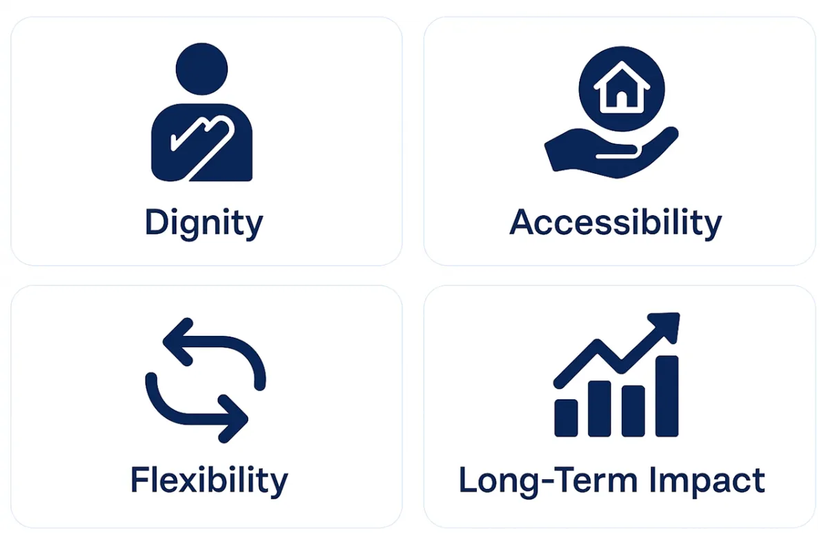 We think differently about housing: not just as transactions, but as partnerships in people’s lives. We are committed to dignity, accessibility, flexibility, and long-term outcomes.